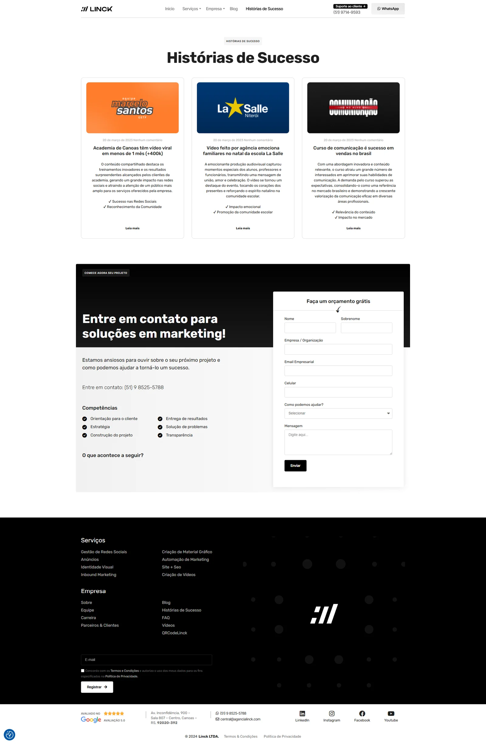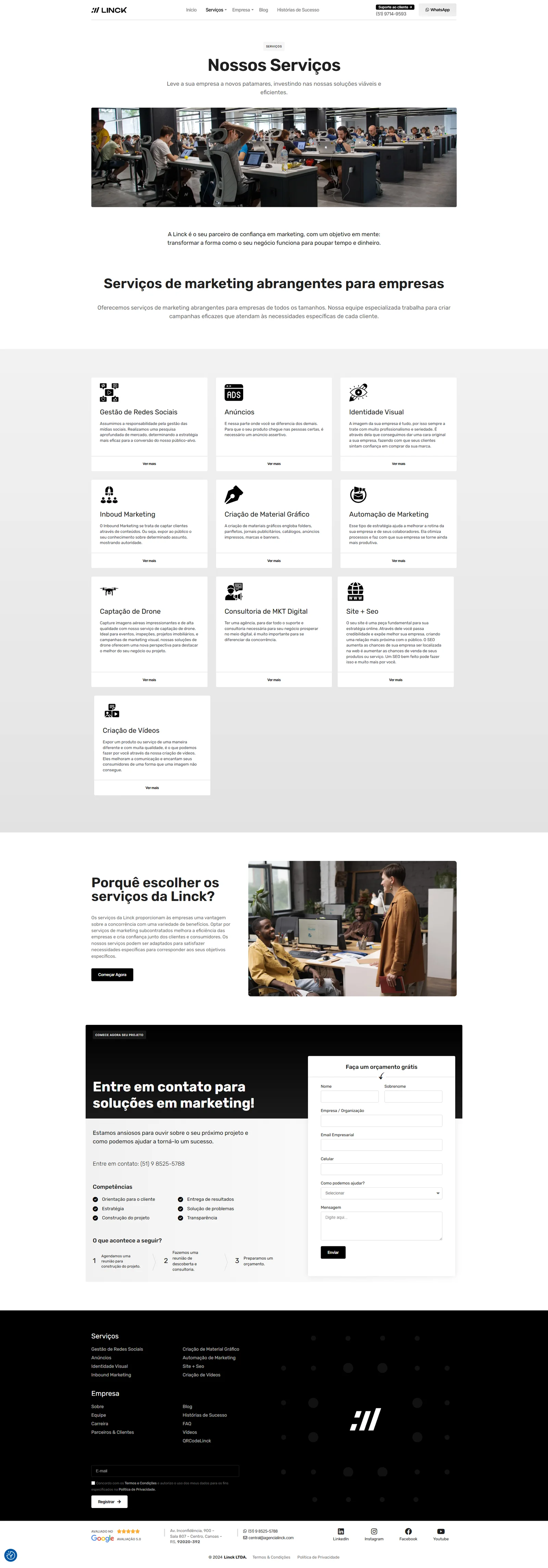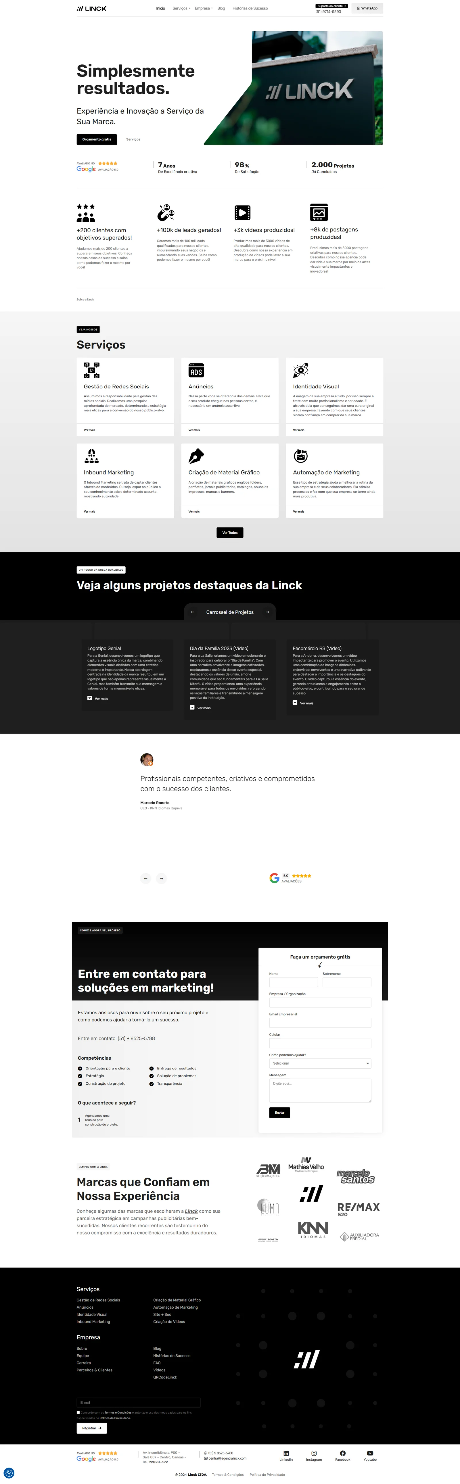 • Representação Digital da Marca: Era necessário criar uma presença online que transmitisse a identidade e os valores da Agência Linck de forma clara e impactante.