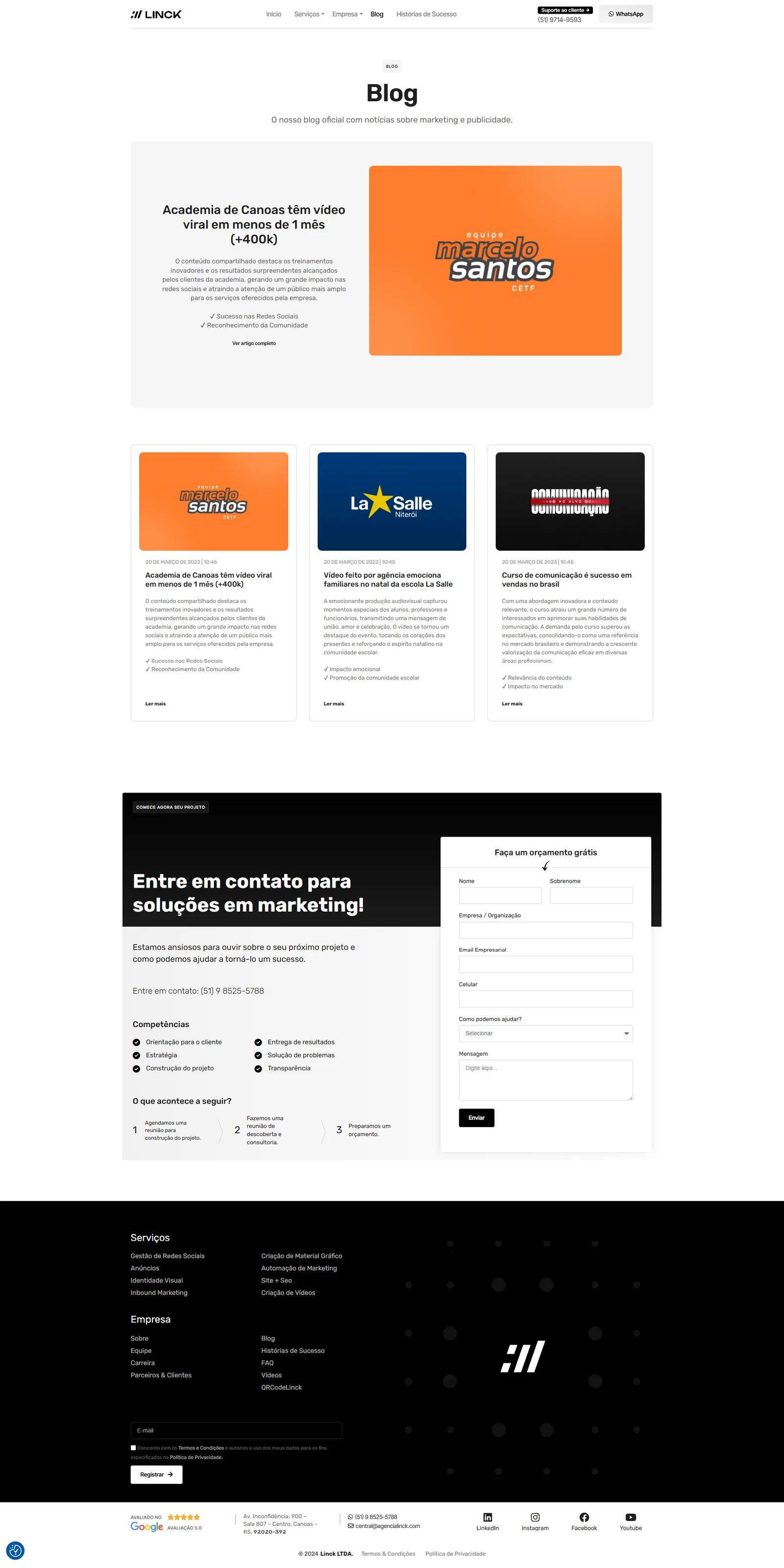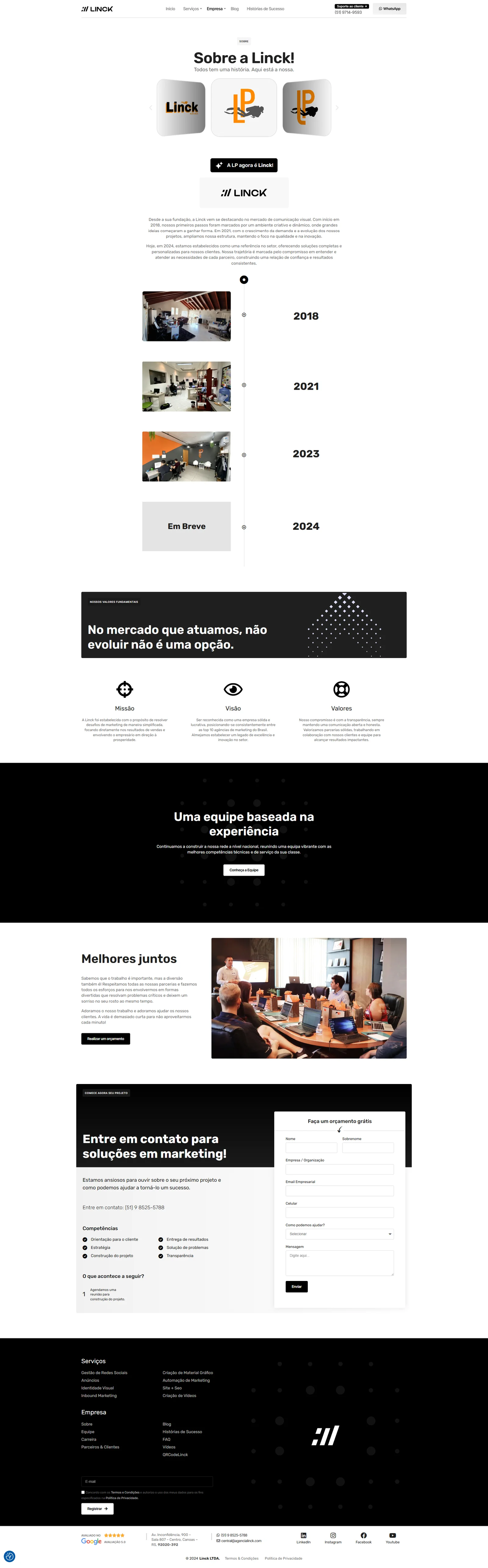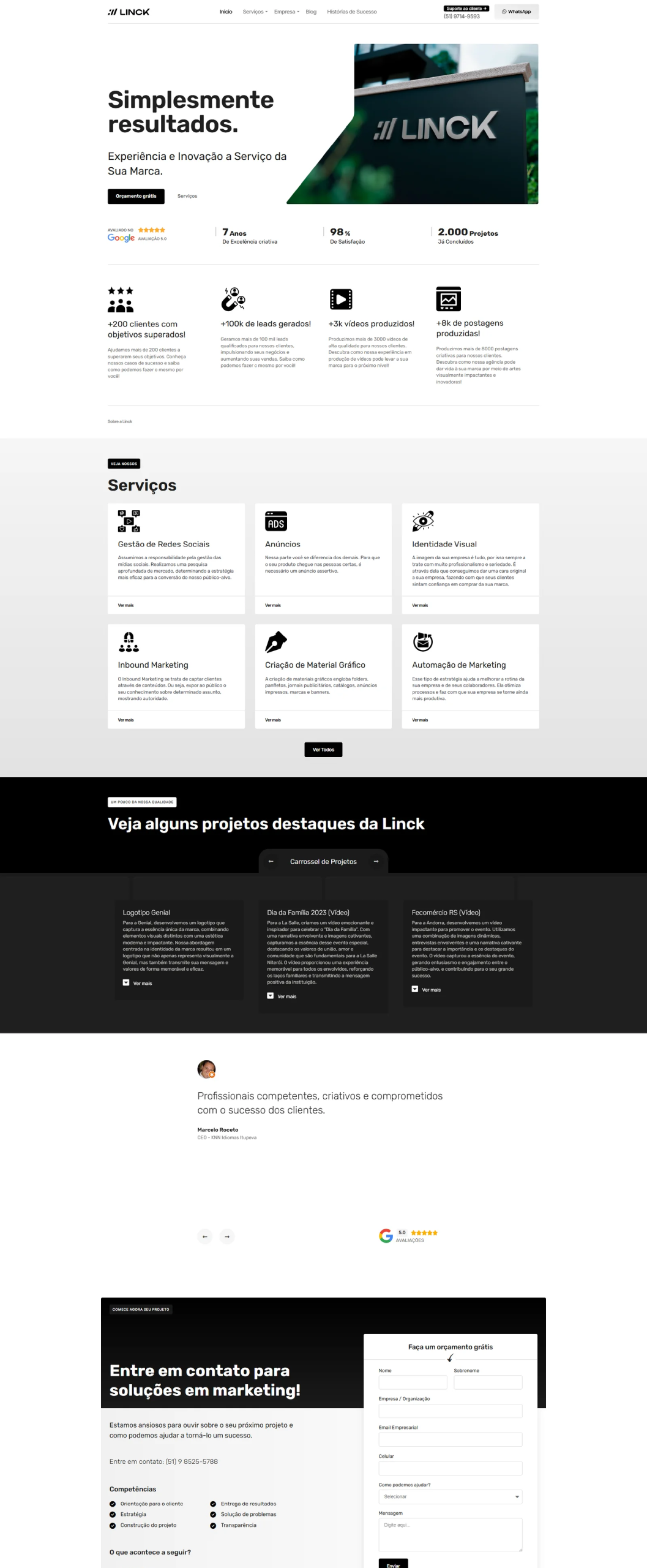 • Representação Digital da Marca: Era necessário criar uma presença online que transmitisse a identidade e os valores da Agência Linck de forma clara e impactante.