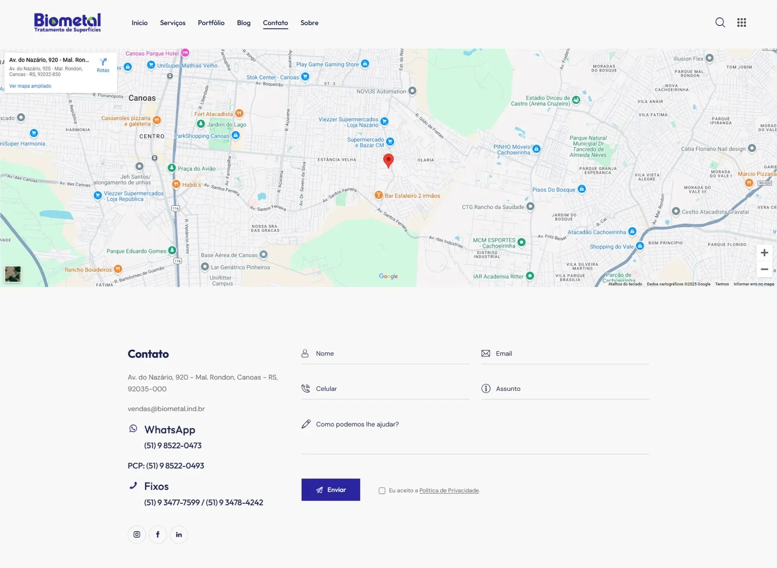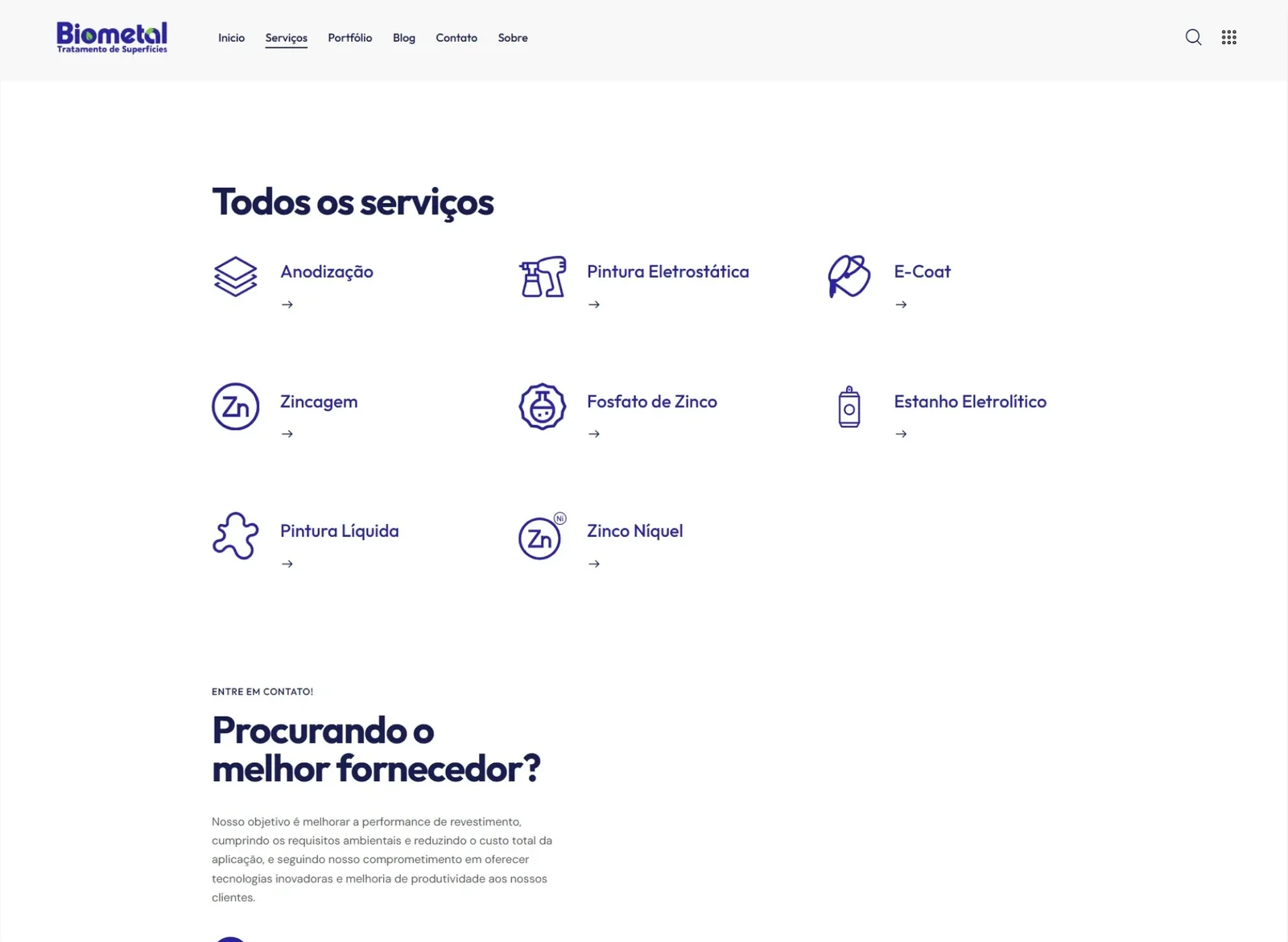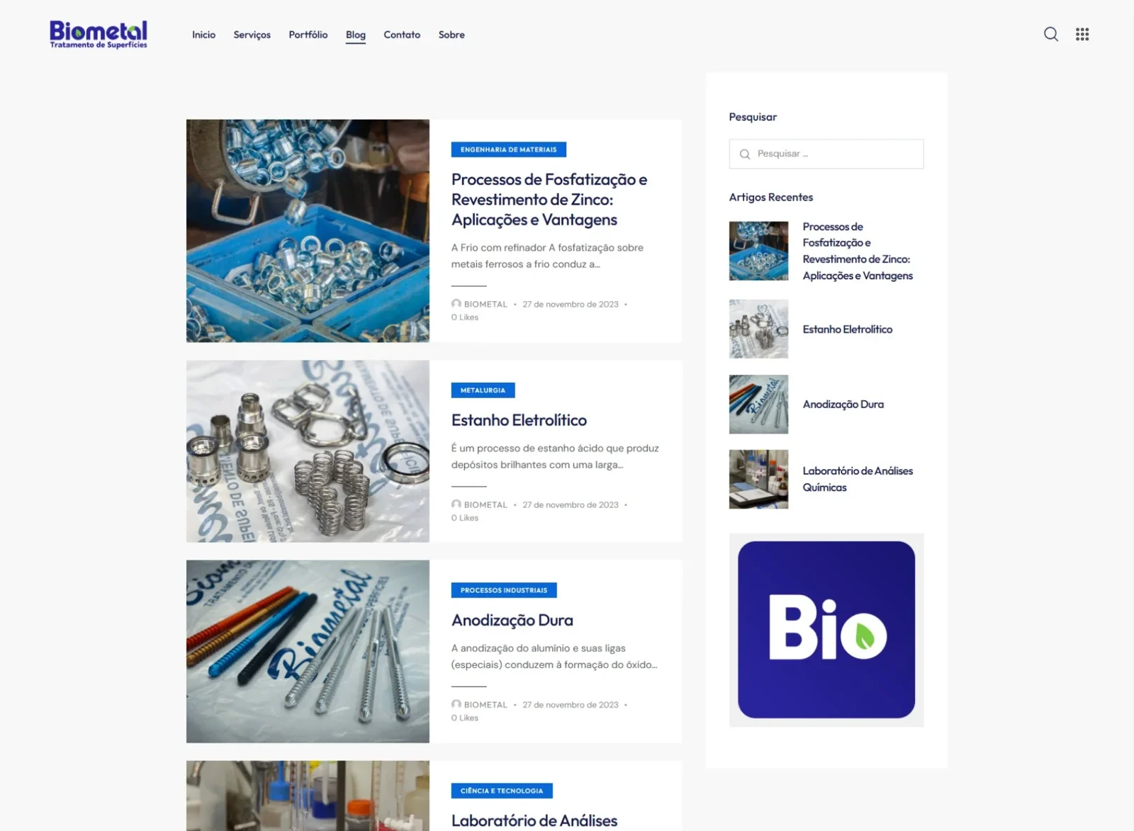 A Biometal precisava de um site institucional moderno para apresentar seus serviços de tratamento de superfícies metálicas de forma clara e profissional. O antigo site tinha uma navegação confusa e um design ultrapassado, dificultando a captação de novos clientes.