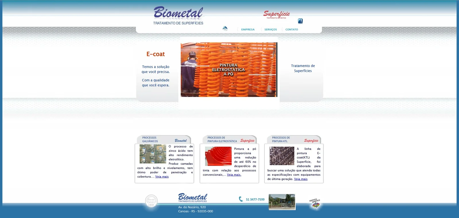 Atuando em Canoas e Região desde 1995, a Biometal é uma empresa prestadora de serviços em galvanoplastia e pinturas. Possui uma linha de produção seriada, Engenheiros capacitados na área. Atendendo projetos especiais conforme as exigências da indústria.
