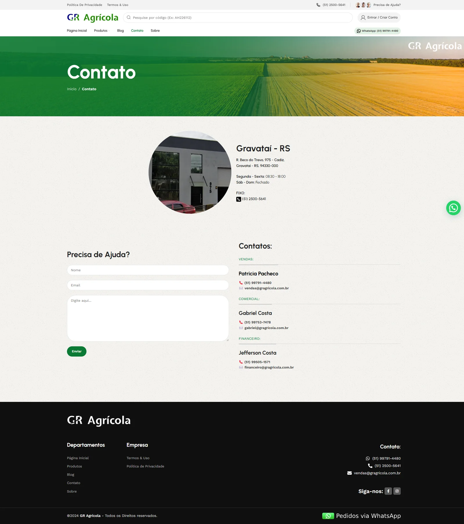 A GR Agrícola necessitava de um site moderno e funcional que refletisse sua expertise no mercado agrícola e facilitasse o acesso dos clientes às informações sobre seus produtos e serviços. O objetivo era criar uma plataforma que melhorasse a experiência do usuário, aumentasse a visibilidade online e fortalecesse a presença digital da marca.