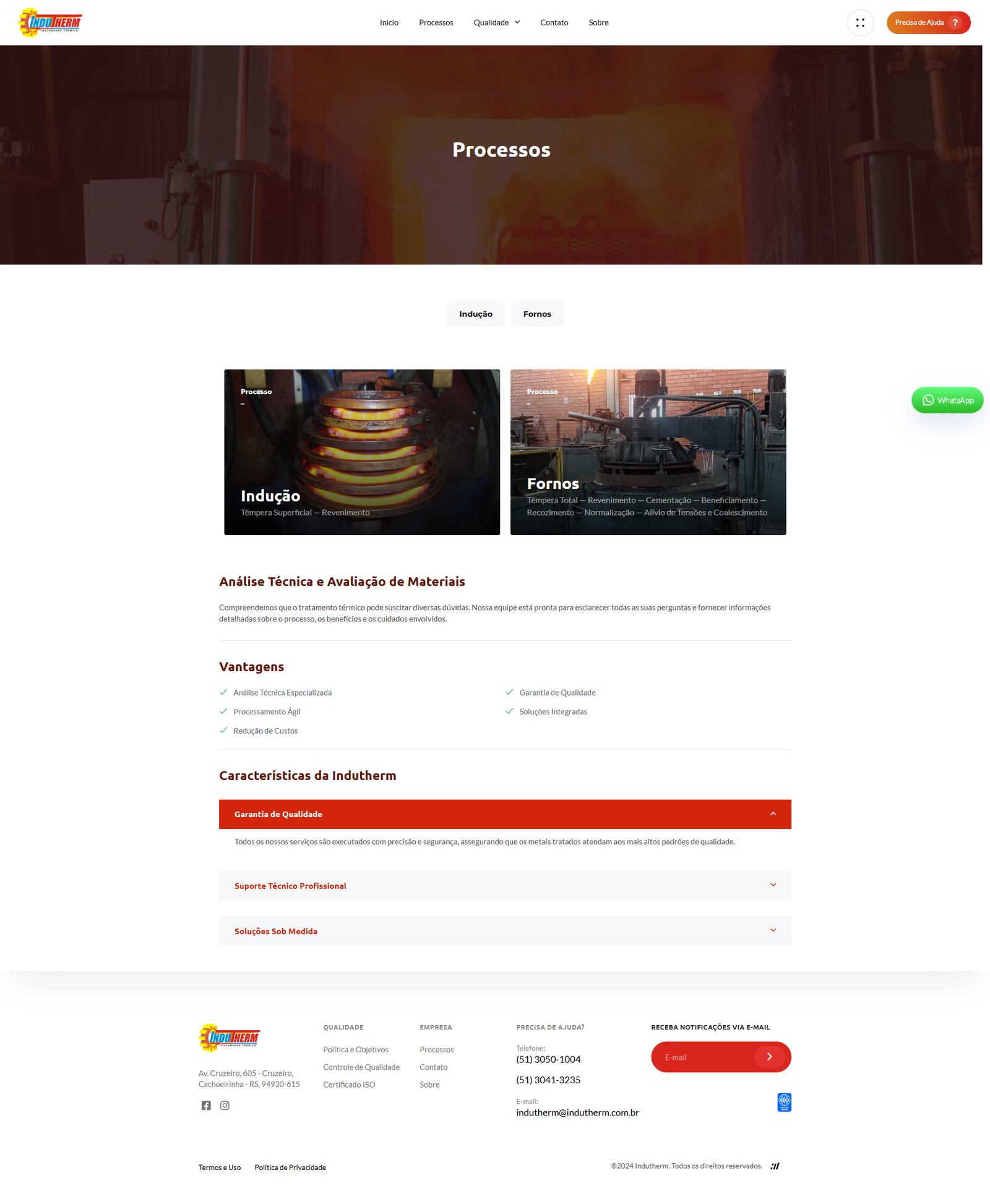 Nosso objetivo foi proporcionar uma experiência de navegação intuitiva, com ênfase nos produtos e serviços oferecidos, destacando os diferenciais da Indutherm no mercado.