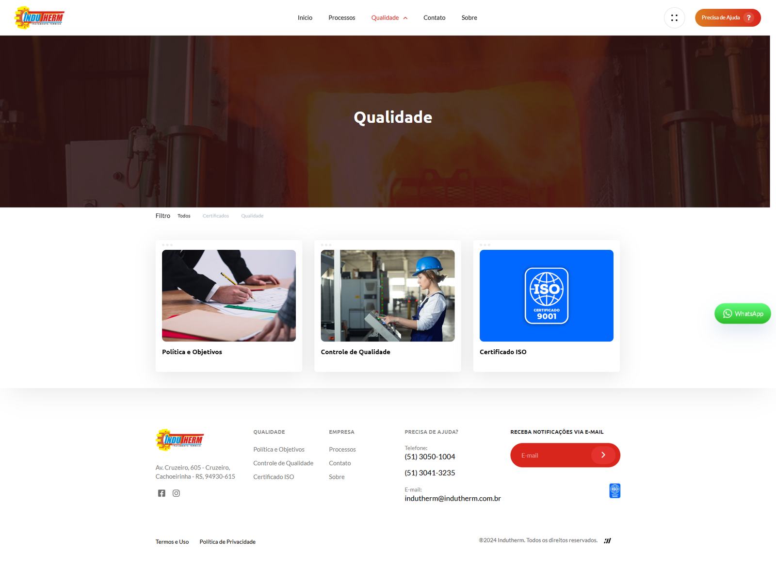 ❌ Presença digital limitada – A Indutherm precisava de um site que representasse seu posicionamento de mercado e facilitasse o acesso às informações técnicas de seus produtos.