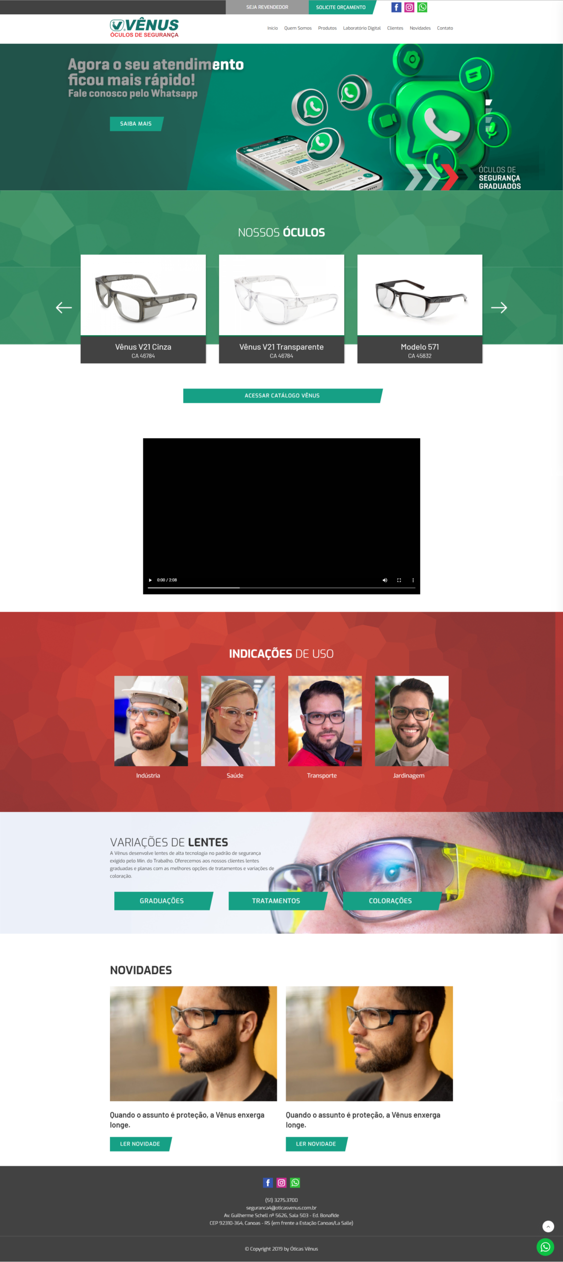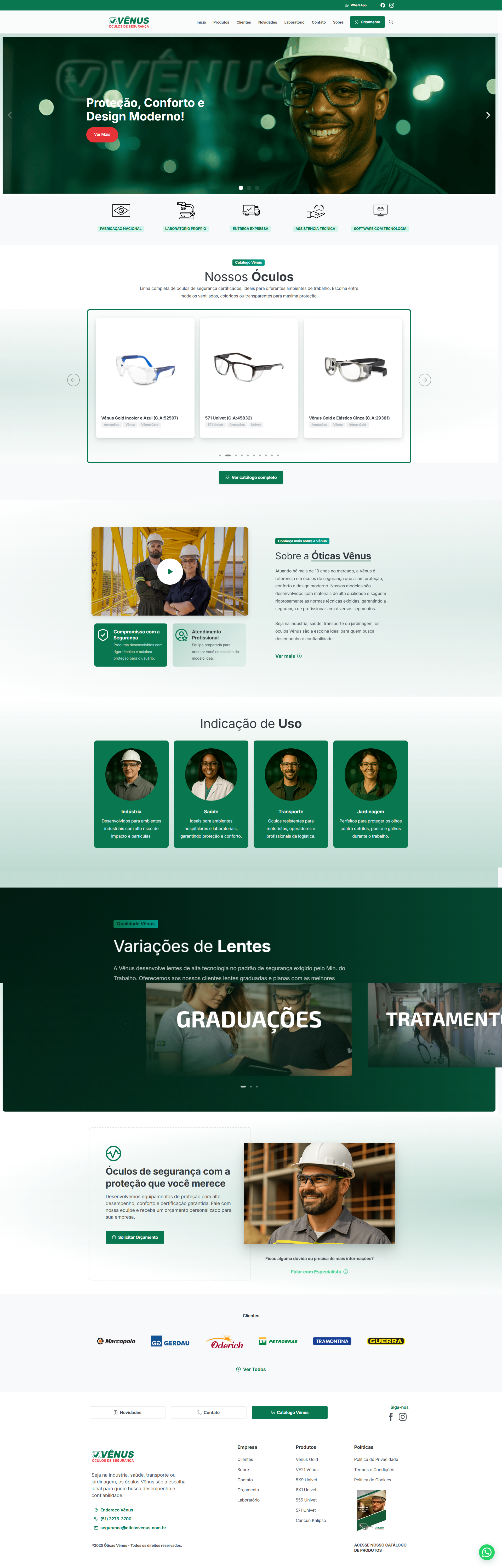 O projeto do site elevou nossa presença digital, permitindo que clientes corporativos e profissionais encontrem com facilidade nossos modelos de óculos de segurança e solicitem orçamentos diretamente — reforçando a qualidade e tradição da Vênus como fabricante nacional.